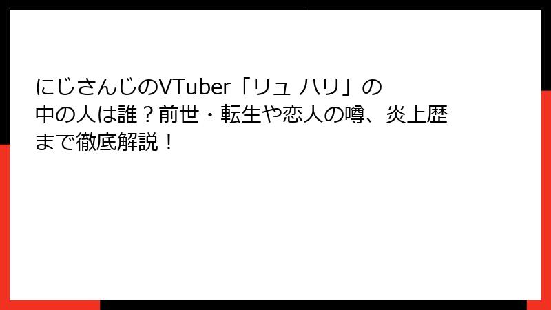 VTuber界で独自のポジションを築くにじさんじ所属のリュ・ハリ。悪夢を収集するというユニークな設定と、明るくエネルギッシュな配信スタイルでファンを魅了し続けています。デビューから5年近く経った2025年現在も、彼女の人気は安定しており、猫好きやゲーム好きという親しみやすい一面が支持を集めています。しかし、VTuberの文化において避けて通れないのが「前世」と「転生」の話題。公式には一切明かされないこの領域は、ファンの想像力を掻き立てます。この記事では、リュ・ハリの前世に関する推測の歴史から、転生の可能性、関連するエピソード、そしてファンコミュニティの反応までを深掘り。すべて公開情報と推測に基づく内容ですので、プライバシーを尊重しつつ、楽しく読み進めてください。にじさんじの多様なライバーたちの中でも、リュ・ハリの謎めいた魅力に迫ります。
