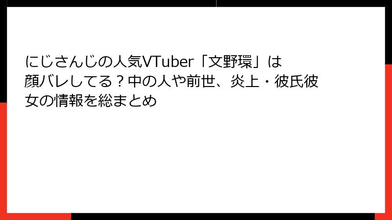 文野環の「中の人」特定は、VTuber界のタブーですが、ネット上ではさまざまな憶測が飛び交います。結論から言うと、顔バレや前世(過去の活動)は一切判明していません。にじさんじの厳重な情報管理が功を奏し、素顔画像や声優名は一切流出していません。