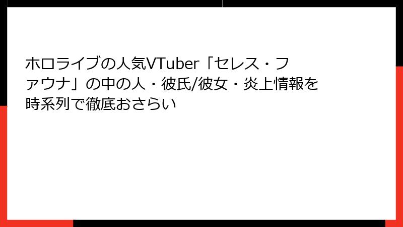セレス・ファウナの物語は、VTuberの「魂の継承」を体現するものです。以下に、時系列で整理: