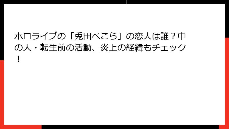 ホロライブのトップVTuber・兎田ぺこら。チャンネル登録者数250万人超、グローバルに愛される「兎娘」ですが、ファンが最も気になるのは「中の人(31歳)」の恋愛事情です。公式には「独身・恋人なし」を貫く彼女ですが、配信中のポロリ発言や炎上デマが飛び交う中、どこまでが真実なのか? この記事では、過去の噂から現在のスタンスまで、根拠を交えて詳しく紐解きます。