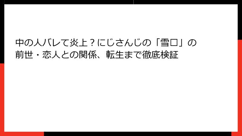 - 事務所対応: にじさんじ運営が異例の「事実無根」声明。雪烛は次回配信で「私の過去は雪のように純粋です」とジョークで封印。