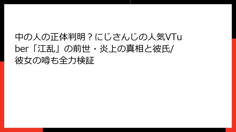 VTuberシーンを賑わすにじさんじ所属の人気ライバー、江乱(えみやみだれ)。独特のクールでミステリアスな魅力と、時折見せる熱いトークでファンを魅了する彼女ですが、VTuberの醍醐味の一つといえば「中の人」の存在です。この記事では、江乱の「中の人」について、噂や根拠を基に詳しく掘り下げてみます。VTuberのプライバシーを尊重しつつ、ネット上の情報から読み解く面白さを味わっていただければ幸いです。では、早速本題へ。
