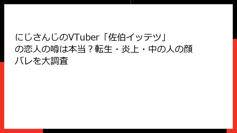 にじさんじのヒーロー、佐伯イッテツの「顔バレ」完全攻略:ゼロ証拠の鉄壁ミステリー