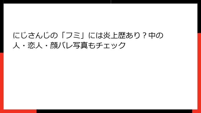ただし、これらはすべて社築。リアル彼氏の証拠はゼロで、にじさんじの炎上事例(椎名唯華や笹木咲の彼氏バレ)から、フミはクリーンに保っているようだ。