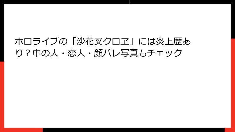 ホロライブ6期生のシャチ娘、沙花叉クロヱ。ツンデレ×PONキャラで愛され、歌唱力でファンを虜にした彼女ですが、ファン最大の謎は「中の人の素顔」。公式では一切顔出しなしのクロヱですが、前世・転生先の断片情報から推測される「顔バレ」事情を徹底解剖します。黒髪美少女伝説から最新のマスク越しの輪郭まで、読み応え満載のビジュアルミステリーです。