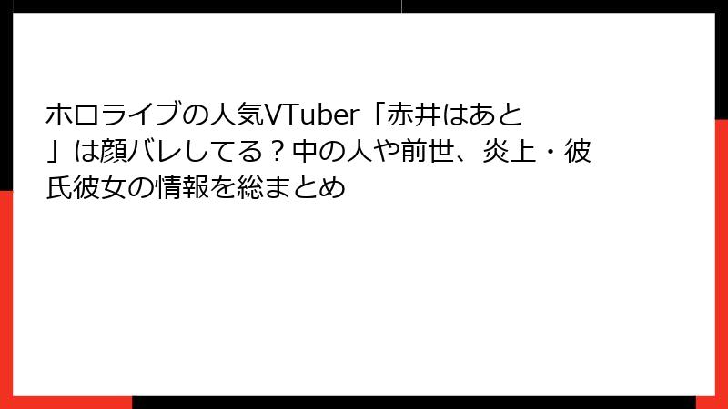 ホロライブの人気VTuber「赤井はあと」は顔バレしてる?中の人や前世、炎上・彼氏彼女の情報を総まとめ
