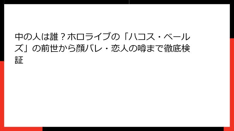 ホロライブEnglishに所属するVTuber、ハコス・ベールズ。赤いツインテールにネズミ耳がチャームポイントの彼女は、デビュー以来、そのエネルギッシュでカオスな配信スタイルで世界中のファンを魅了してきました。今日の記事では、そんなハコス・ベールズの「中の人」—つまり、彼女の声を担当し、魂を吹き込む存在—について、深掘りしていきましょう。VTuber界の常として公式には明かされない謎の部分が多いですが、ファンの間で囁かれる説や根拠を基に、読み応え満点でお届けします。さあ、サイコロを振って運命を決めましょうか?(笑)