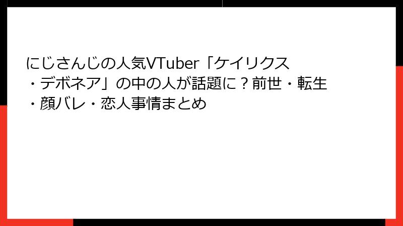 にじさんじEN・BY THE BEATのサボり系バウンサー、ケイリクス・デボネア。2025年3月デビューからわずか8ヶ月で「デボンヘア」を虜にしている彼ですが、VTuberファンが最も気になるのは「顔バレ」の有無。結論から言えば、**2025年11月8日現在、公式・非公式ともに顔バレはゼロ**。しかし、声質・指先・前世特定から生まれる「想像の素顔」は、コミュニティを熱狂させ続けています。今回は、ブログ風に「顔バレ疑惑」の全貌を時系列で徹底解剖! デボンヘア諸君、妄想の扉を開いてください。