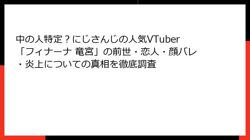にじさんじENのサンゴ礁マーメイド、フィナーナ・竜宮。透き通る歌声と「Finance Ryugu」モードのギャップで世界を魅了する彼女ですが、ファンの最大の関心事の一つが「顔バレ」――つまり「中の人」の素顔です。VTuber文化では「顔バレ=タブー」とされる中、フィナーナは前世・白銀唯時代を含め、徹底した情報遮断でミステリーを保ち続けています。今回は、噂の写真からAI生成疑惑、配信中の「うっかり」まで、顔バレ関連の全エピソードを時系列で徹底解剖。海の深淵のように、どこまで覗けるのか――一緒に潜りましょう。