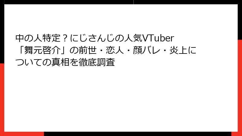 舞元啓介の「顔バレ」ミステリー:40歳おじさんじの素顔は永遠の謎か