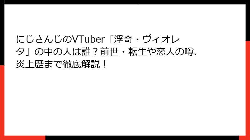 こんにちは、VTuberファン必見のブログへようこそ! 今日は、にじさんじENの人気ライバー、浮奇・ヴィオレタ(Uki Violeta)について深掘りします。彼の未来から来たエスパーという魅力的な設定に心を奪われるファンが続出中ですが、気になるのはやはり「中の人」の正体ですよね。デビューから3年以上経った今も謎に包まれた部分が多いですが、信頼できる情報源から集めたデータを基に、詳しく解説していきます。VTuberの裏側に興味津々のあなたにぴったりな、読み応え満載の記事をお届けします!