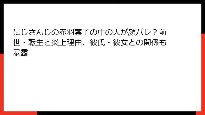 また、「前世なし・顔バレなし」説も根強い。赤羽葉子のデビューがにじさんじの新人スカウトによるものとされ、過去の顔出し活動痕跡がありません。2025年のまとめサイトでも、「確定情報なし」と結論づけられるものが多数。一方で、にじさんじアニメ『バーチャルさんはみている』の合成ミスで「化物顔バレ」ネタが生まれましたが、これは公式ミスで本物の顔バレとは無関係。ネットの誤情報拡散が、顔バレ神話を生んでいます。