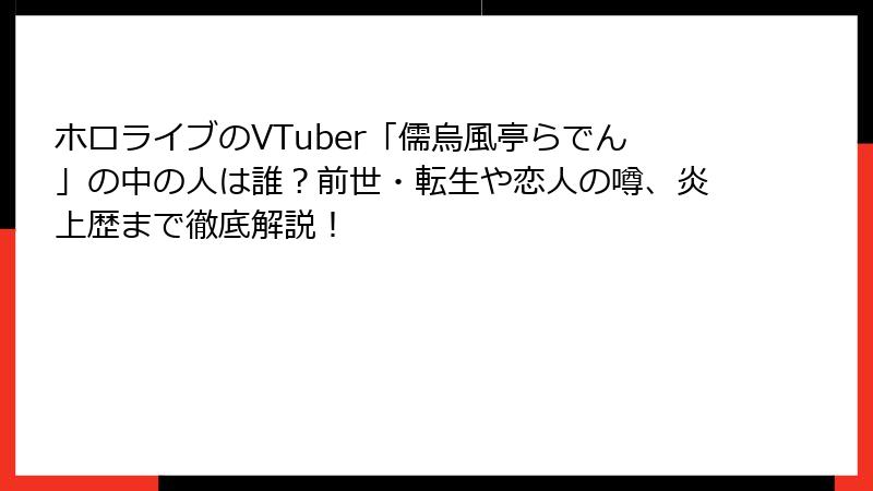 ホロライブの文化伝道師、儒烏風亭らでんの前世と転生の謎を解く