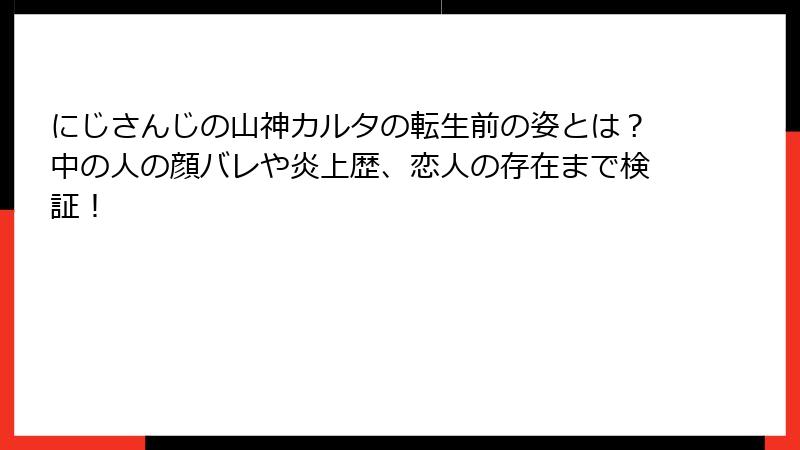 山神カルタさんの前世・転生については、にじさんじ公式が一切触れていません。デビューから5年以上経過した今も、配信やプロフィールで過去活動を匂わせる発言はゼロ。調査した限り、声質や話し方の共通点から特定できる前世は存在しないようです。