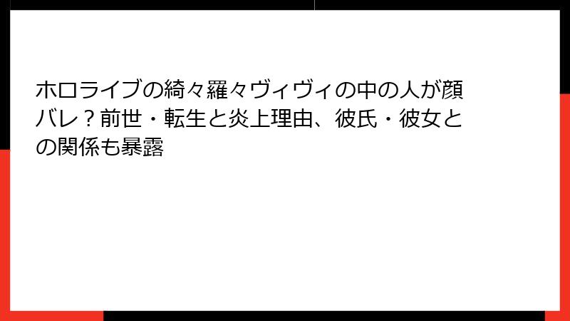 - 視聴者反応: Xで「ヴィヴィたんの顔バレwww」「前世と一致?」の投稿が連発。ハッシュタグ #ヴィヴィ顔バレ が一時トレンド。