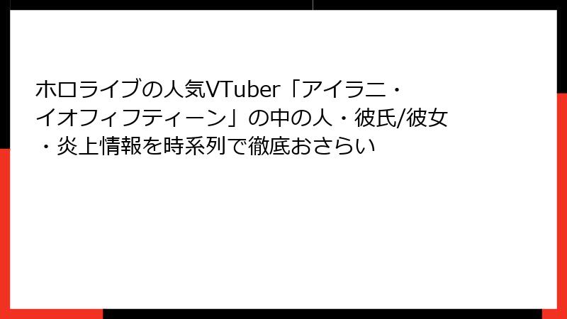 ホロライブIDの宇宙人お姫様、アイラニ・イオフィフティーン(通称イオフィ)。多才な才能と優しい人柄でファンを魅了する彼女ですが、VTuberのプライベートな恋愛事情は永遠の謎の一つです。公式には一切語られない「彼氏(もしくは、彼女)」「恋人」について、配信エピソードやファンコミュニティの反応を基に考察。2025年11月現在もクリーンなイメージを保つイオフィの魅力に迫ります。あくまでファン目線の推測として、楽しく読み進めてください。