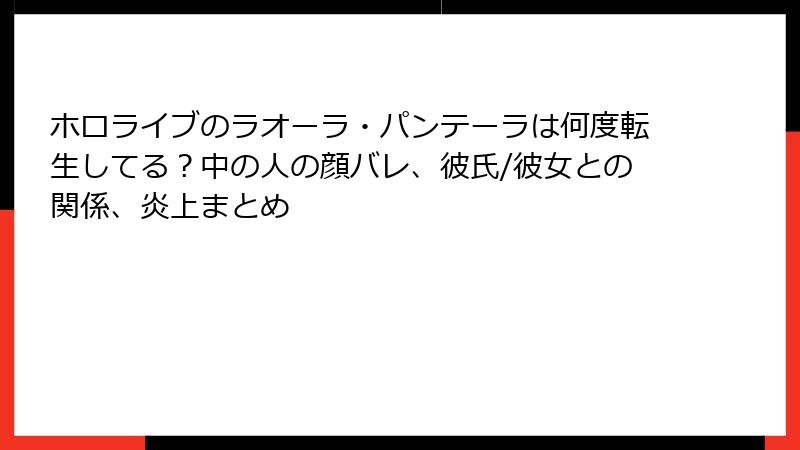 ホロライブのラオーラ・パンテーラは何度転生してる?中の人の顔バレ、彼氏/彼女との関係、炎上まとめ