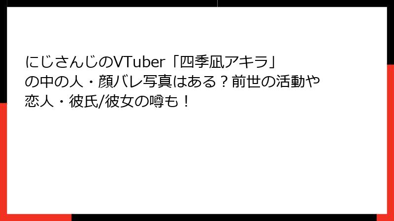 この記事が、あなたの四季凪アキラ考察をアップデートするきっかけに。夢のような顔バレ話、シェアしてみては?