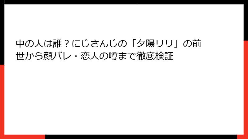 夕陽リリさんの前世、つまり中の人の過去活動については、公式に明かされていません。にじさんじのポリシーとして、ライバーのプライバシーを尊重するスタンスを取っているため、詳細は謎に包まれています。しかし、ファンの調査や配信内容から、以下のような情報が浮上しています。
