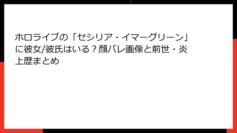 ホロライブをはじめとするVTuber業界では、「中の人」のプライベート、特に恋愛関係は一切公式に明かされません。セシリアの場合も、公式プロフィールや配信ではキャラクター設定に徹しており、恋人に関する言及はゼロです。インタビューやオフコラボでも、個人的な関係性はぼかされ、ファンサービスとしてのジョークが主です。このポリシーは、VTuberの没入感を保つためのもので、2025年現在も変わりありません。