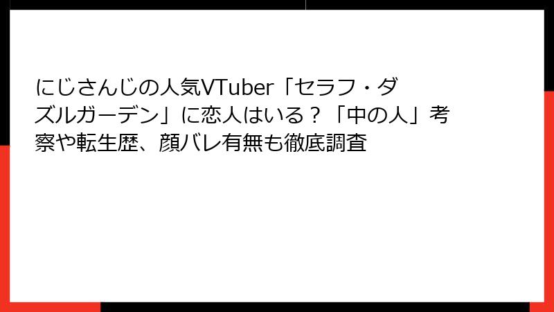 にじさんじVOLTACTION所属のVTuber、セラフ・ダズルガーデン。ヴァイオリニストの優雅なキャラクターで、バイオリン演奏や癒し系雑談が魅力の人気者です。デビュー以来、ファンからは「中の人の素顔が気になる!」という声が絶えませんが、VTuberの鉄則である「顔バレ禁止」を守り抜いています。このブログ記事では、2025年12月現在の情報を基に、セラフの顔バレ事情を詳しく考察。主に前世推測との関連やネット上の画像騒動を中心に、読み応えのある内容でお届けします。あくまで非公式のファン視点なので、プライバシーを尊重しつつ、楽しく読み進めてくださいね!