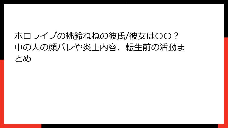 - 桃鈴ねねの「彼氏(もしくは、彼女)」「恋人」について