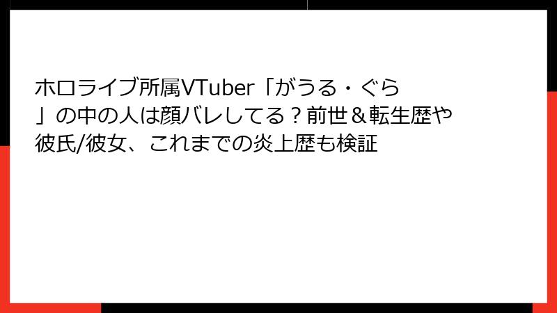 ホロライブEnglish -Myth-の伝説的VTuber、がうる・ぐら(Gawr Gura)。2020年のデビューからわずか数年でYouTube史上最速の400万人超登録者を達成した彼女ですが、VTuberの最大のタブーである「顔バレ(中の人の顔が漏洩する事件)」は、彼女のキャリアに影を落とす出来事として繰り返し語られています。公式には一切の顔出しを拒否し、プライバシーを厳守するぐらですが、前世senzawa時代の古い画像流出から、2024年のHololiveアプリ事件、さらには2025年の卒業後の転生VTuber「saba sameko」での新たなドキシング疑惑まで、数々の波紋を呼んでいます。この記事では、時系列でこれらの事件を深掘りし、背景やファンコミュニティの反応を解説。VTuber文化の闇と光を、読み応えたっぷりでお届けします。