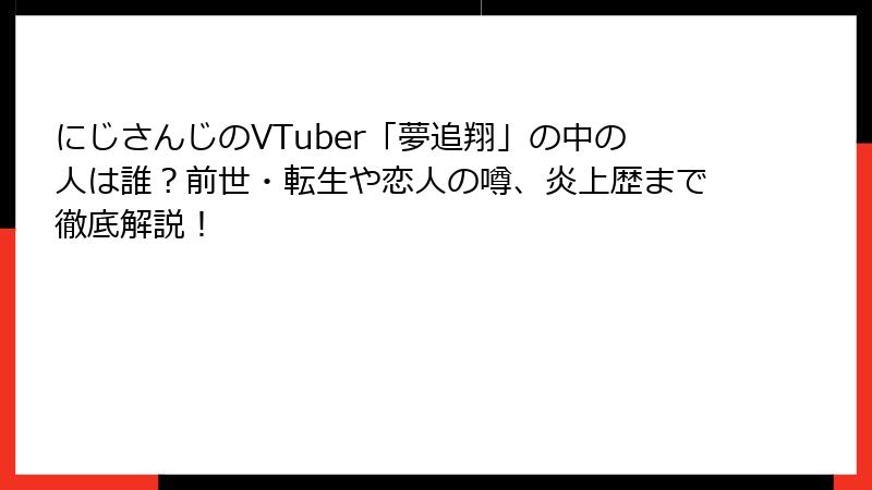 夢追翔は、にじさんじのミュージシャンVTuber。顔バレは横顔のみで、好青年です。