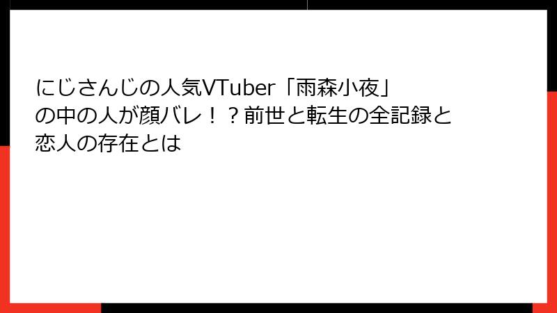 にじさんじの人気VTuber「雨森小夜」の中の人が顔バレ!?前世と転生の全記録と恋人の存在とは