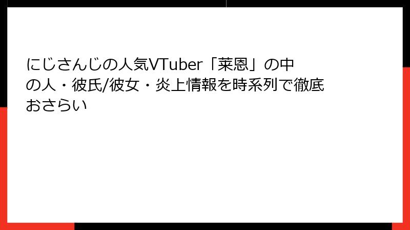 にじさんじの人気VTuber「莱恩」の中の人・彼氏/彼女・炎上情報を時系列で徹底おさらい