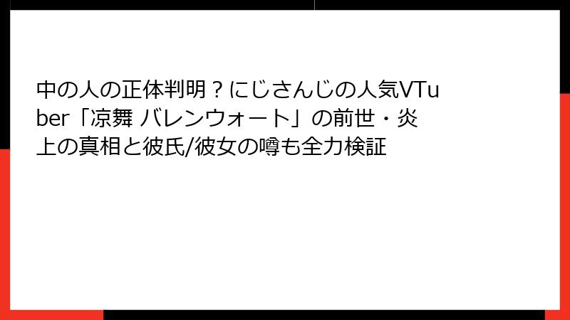 中の人の正体判明?にじさんじの人気VTuber「凉舞 バレンウォート」の前世・炎上の真相と彼氏/彼女の噂も全力検証