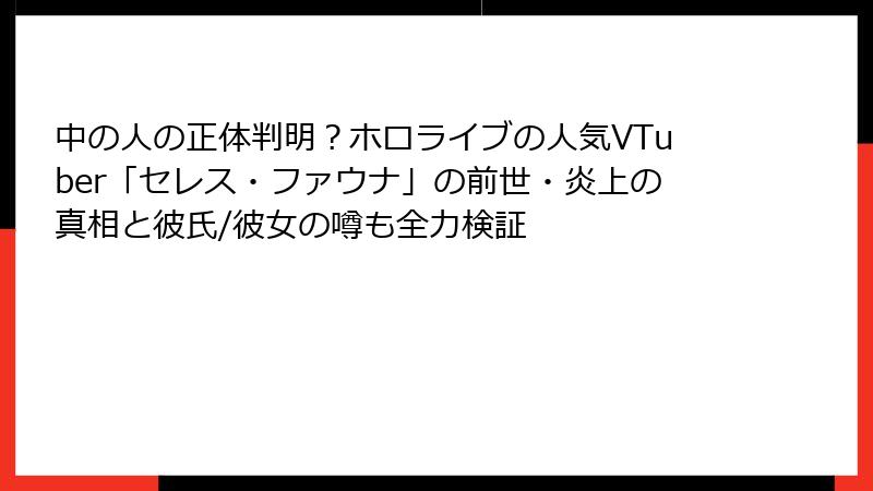 中の人の正体判明?ホロライブの人気VTuber「セレス・ファウナ」の前世・炎上の真相と彼氏/彼女の噂も全力検証