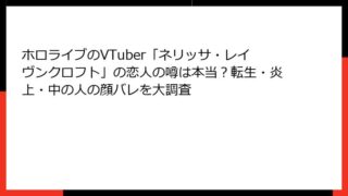 ホロライブ ホロライブのVTuber「ネリッサ・レイヴンクロフト」の恋人の噂は本当?転生・炎上・中の人の顔バレを大調査 ネリッサ・レイヴンクロフトの「中の人」を探る:ホロライブの歌姫の素顔と秘密 ホロライブEnglishの-Advent-世代を代表する歌の魔人、ネリッサ・レイヴンクロフト。彼女の圧倒的な歌唱力と魅力的なキャラクターで、世界中のファンを魅了... 2025.10.18 ホロライブ