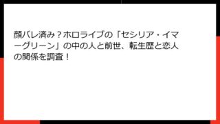 ホロライブ 顔バレ済み?ホロライブの「セシリア・イマーグリーン」の中の人と前世、転生歴と恋人の関係を調査! セシリア・イマーグリーンの「中の人」探訪:ホロライブEN Justiceの謎めいた自動人形 ホロライブEnglishの第四世代「Justice」に所属するセシリア・イマーグリーンは、2024年6月22日のデビュー以来、その優雅なドイツア... 2025.10.19 ホロライブ