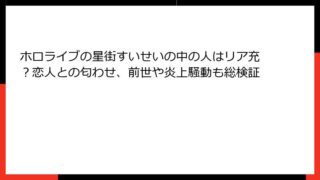 ホロライブ ホロライブの星街すいせいの中の人はリア充?恋人との匂わせ、前世や炎上騒動も総検証 星街すいせいの中の人を徹底解剖! ホロライブの彗星が輝く裏側 ホロライブプロダクションに所属するVTuber、星街すいせい。彗星のように鮮やかに現れ、歌声でファンを魅了する彼女の存在は、VTuber界のスターとして輝きを増すばかりだ。し... 2025.10.19 ホロライブ