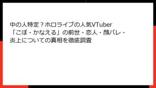 ホロライブ 中の人特定?ホロライブの人気VTuber「こぼ・かなえる」の前世・恋人・顔バレ・炎上についての真相を徹底調査 こぼ・かなえるの「中の人」探訪:ホロライブの雨使い少女の素顔に迫る ホロライブプロダクションのインドネシア支部で輝くVTuber、こぼ・かなえる。灯台の頂上で雨を操る不思議な力を持つ彼女の配信は、破天荒なトークと圧巻の歌唱力で世界中のフ... 2025.10.16 ホロライブ