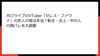 ホロライブ ホロライブのVTuber「セレス・ファウナ」の恋人の噂は本当?転生・炎上・中の人の顔バレを大調査 セレス・ファウナの「中の人」を徹底解剖:癒しの声の裏側に隠された物語 ホロライブENに所属するVTuber、セレス・ファウナ。自然の守護者として優しく穏やかな配信でファンを魅了し続けた彼女ですが、2025年1月の卒業を機に、その「中の人... 2025.10.17 ホロライブ