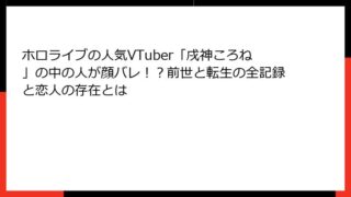 戌神ころねの「中の人」探訪:人気VTuberの素顔に迫る ホロライブプロダクションに所属するVTuber、戌神ころね。犬のような可愛らしい外見と、独特の東北訛りが混じった明るい声でファンを魅了し続けている彼女ですが、その裏側にいる「中の...