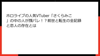 ホロライブ ホロライブの人気VTuber「さくらみこ」の中の人が顔バレ!?前世と転生の全記録と恋人の存在とは