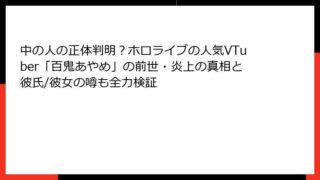 ホロライブの妖艶な鬼娘、百鬼あやめの「中の人」完全解析 ホロライブプロダクションに所属するVTuber、百鬼あやめ。魔界の学校に通う和装の鬼娘としてデビュー以来、その可愛らしい声と妖艶な魅力でファンを魅了し続けています。チャンネル登録者...