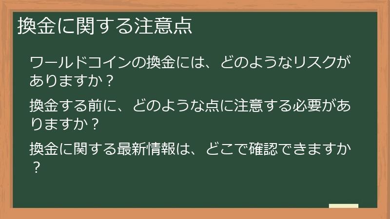 ワールドコインの換金に関する、具体的な疑問や注意点について、さらに詳しく解説します。
