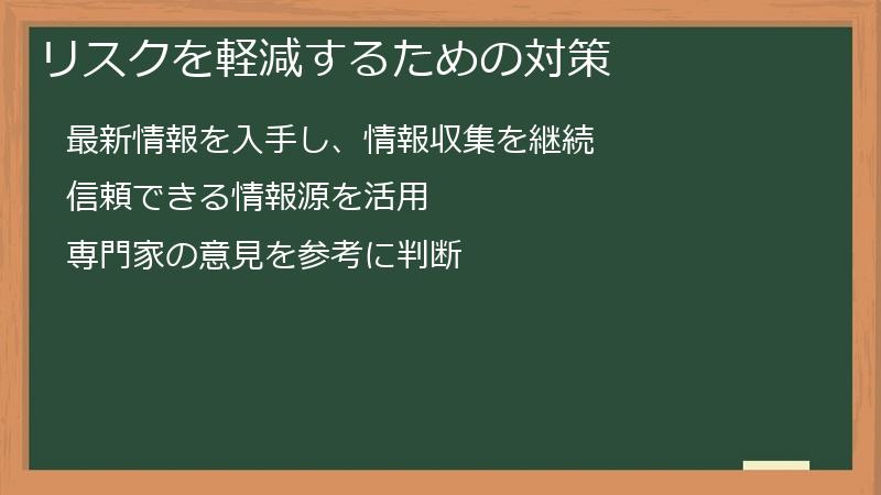 そのため、常に最新の情報を入手し、情報収集を継続することが重要です。