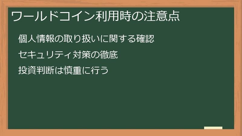 ワールドコインを利用する際には、以下の点に注意する必要があります。