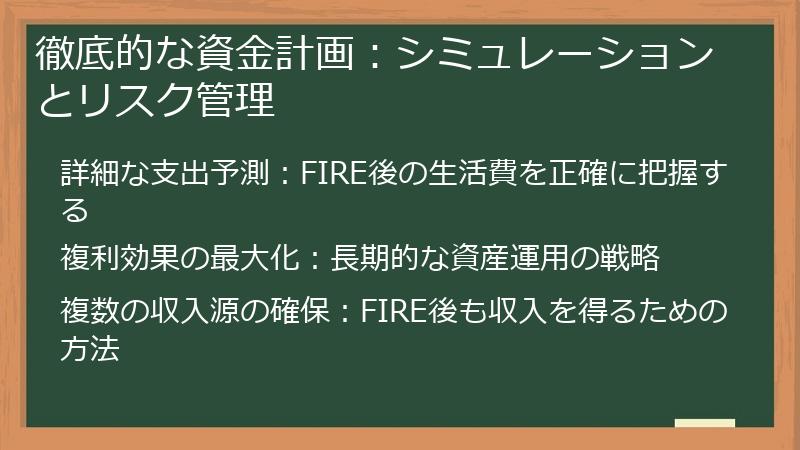 FIREの実現には、十分な資産形成が不可欠ですが、その後の資金管理も同様に重要です。